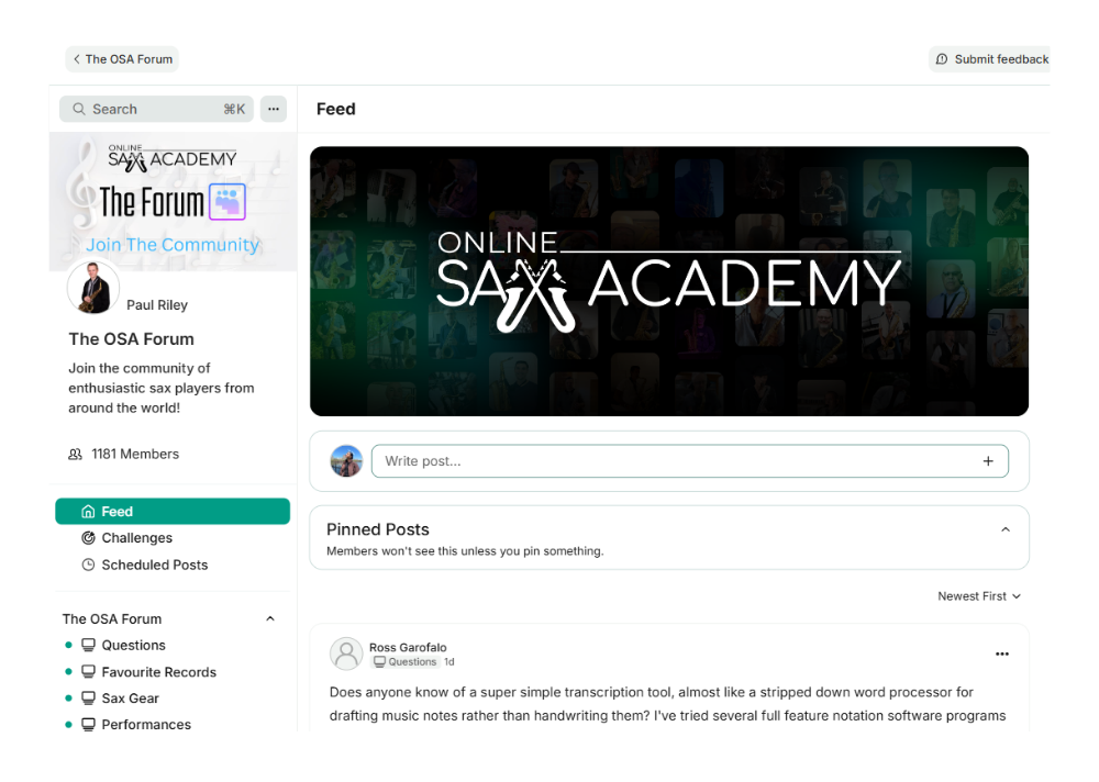 As a Premium Member, you also gain exclusive access to our global saxophone community! Connect directly with Paul Riley, our expert instructor, and interact with saxophonists around the world. Exchange tips, seek personalized advice, and share your progress with musicians who share your passion.